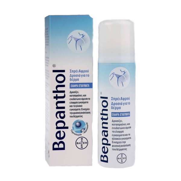 Το Bepanthene® Σπρέι Αφρού, ιατροτεχνολογικό προϊόν, είναι ένα σπρέι με λευκό, απαλό αφρό, στη μορφή γαλακτώματος νέας τεχνολογίας (nanoemulsion). Καθώς δε χρειάζεται να γίνεται εντριβή του δέρματος με τον αφρό, αφού αυτός απορροφάται αυτόματα, η εφαρμογή είναι ανώδυνη.